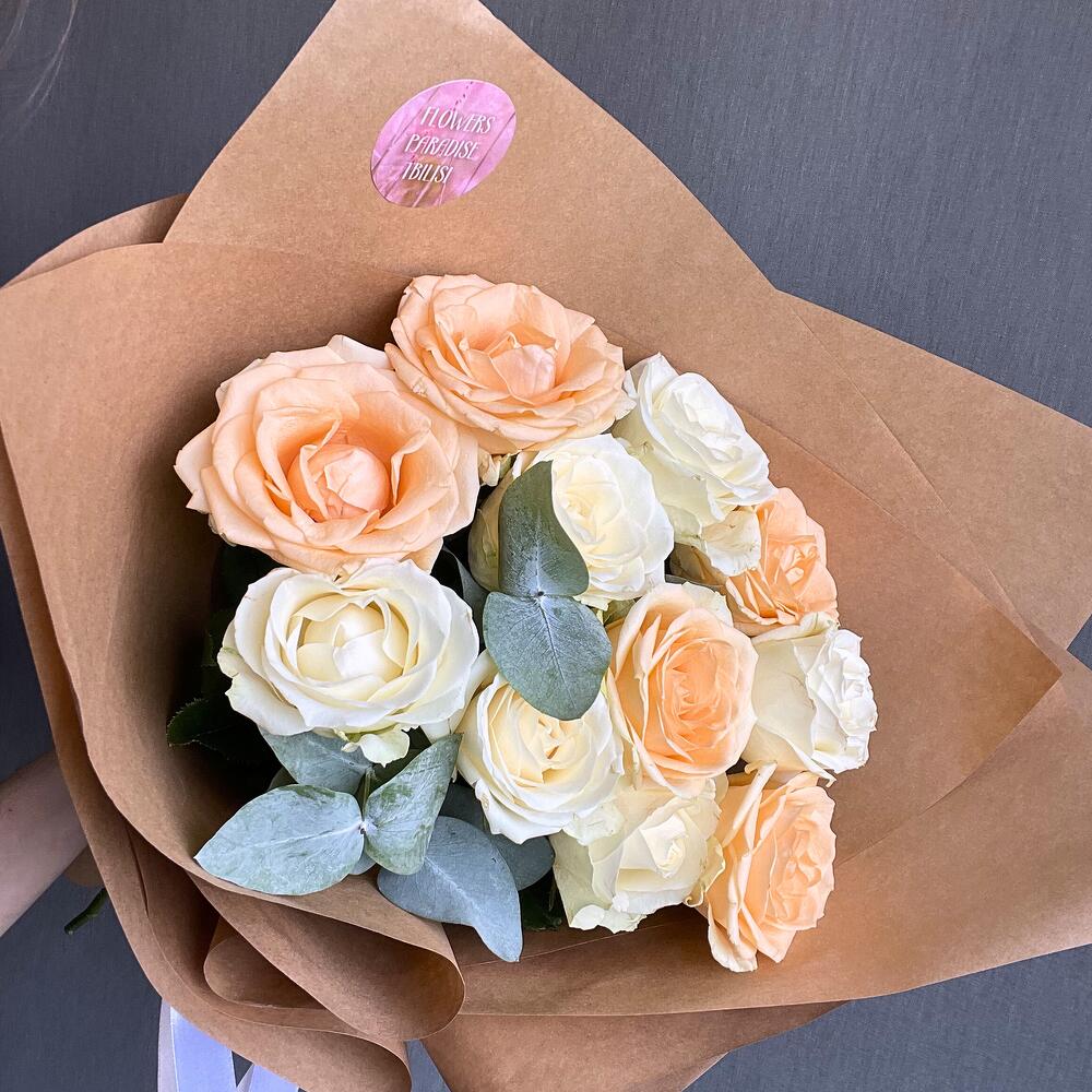 Представляем букет, состоящий из двух видов роз. Мы учитываем ваши пожелания относительно количества цветов и цветовой гаммы, чтобы создать букет, который идеально подходит к вашему вкусу и стилю.