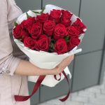 Метки: 15 роз, Красные розы, от 3000 до 4000 руб, Роза 50 см