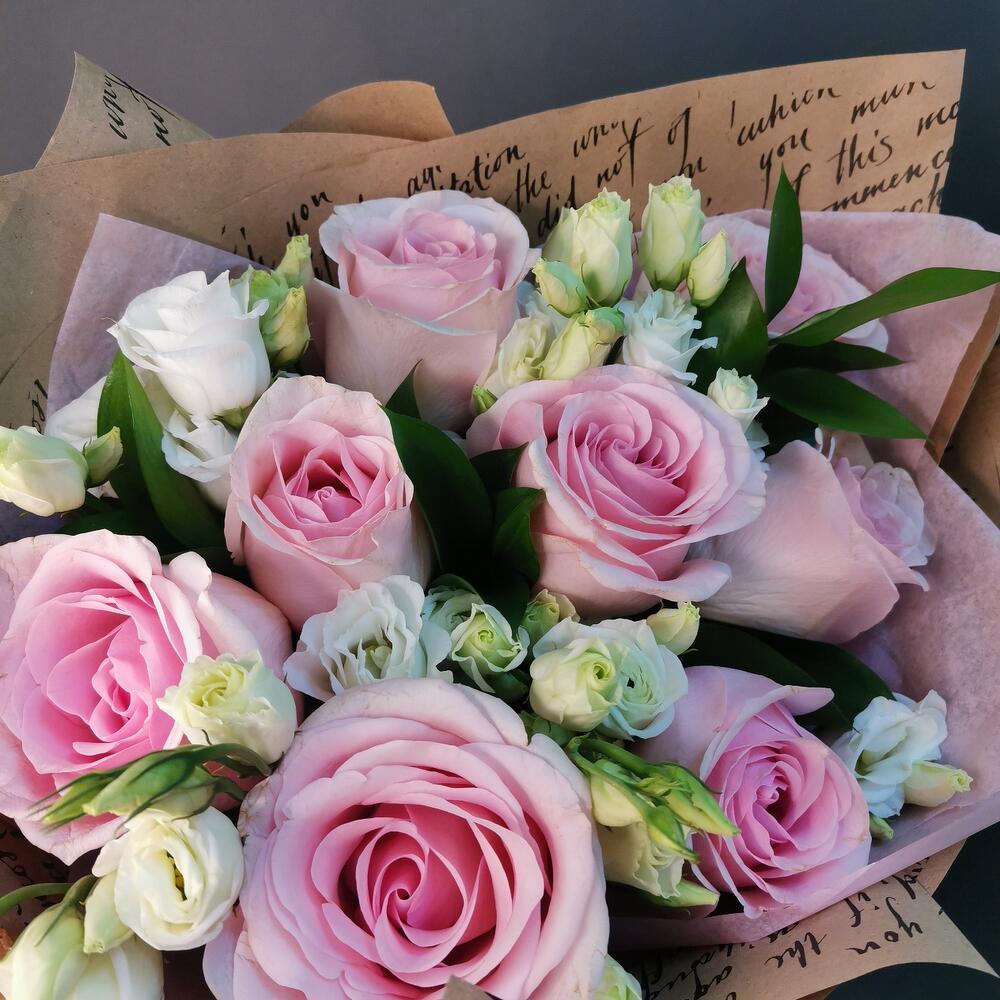 Букет роз и лизиантуса «Онегин»