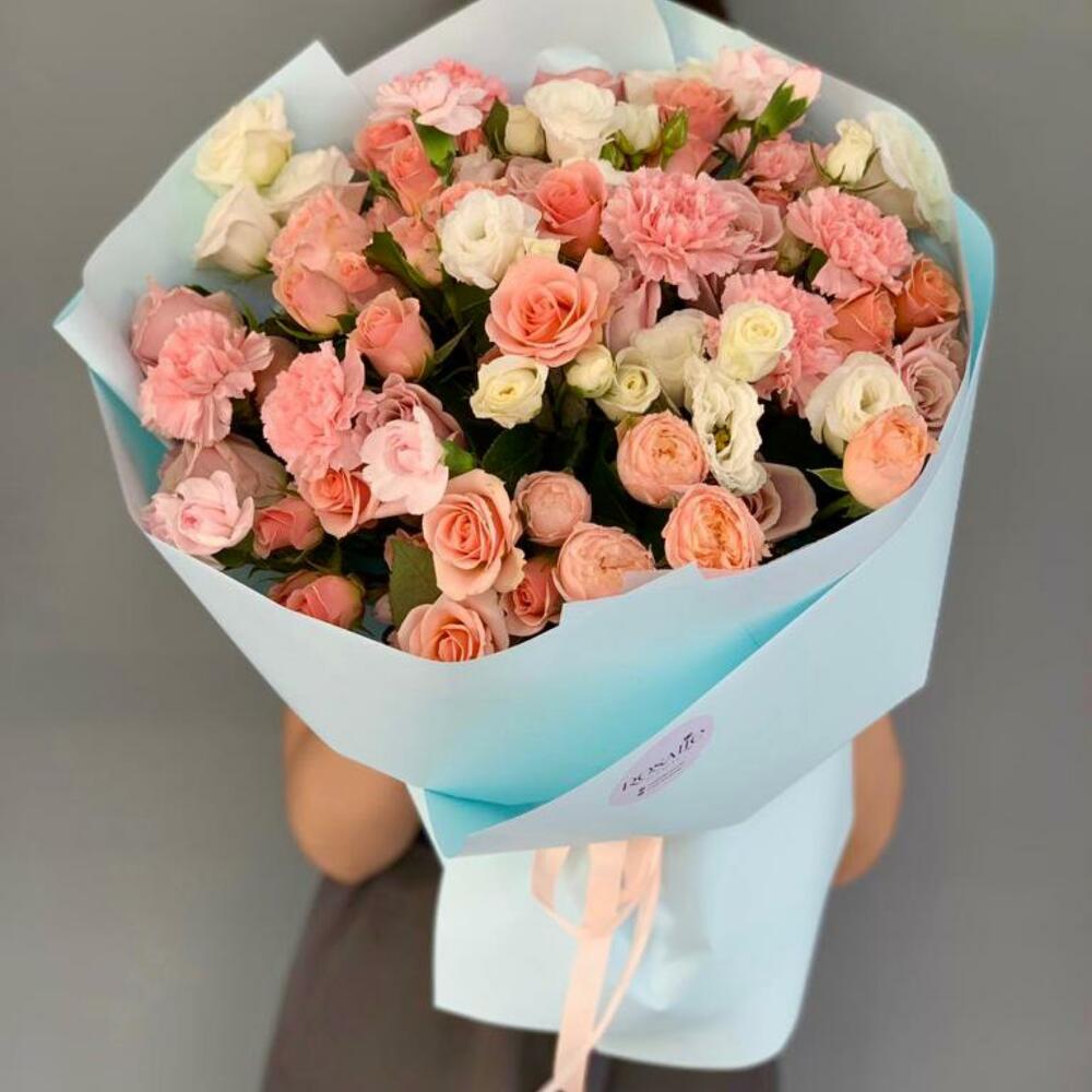 Гвоздики, Кустовые розы, Пионовидные розы, Розы
