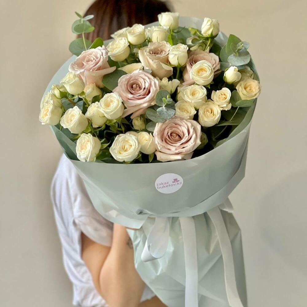Альстромерии, Кустовые розы, Лизиантусы, Пионовидные розы, Розы, Ромашки