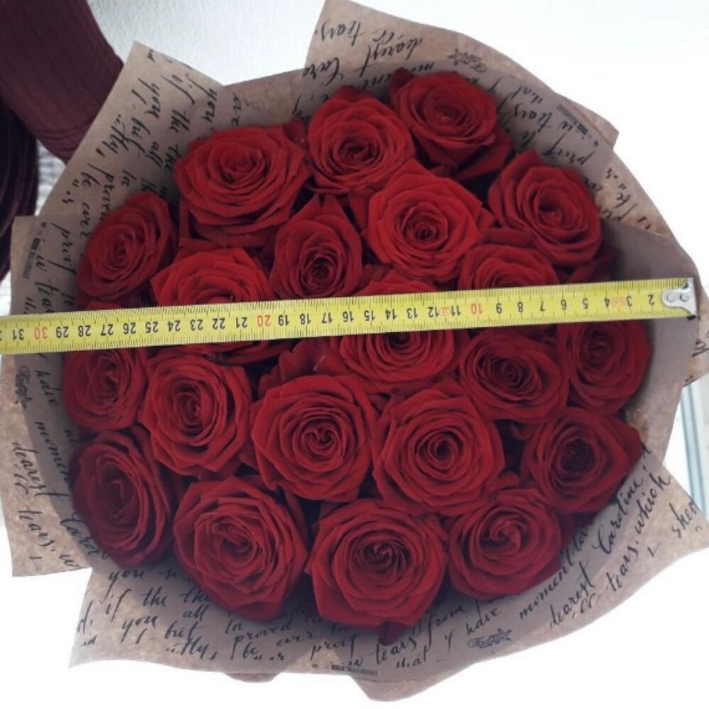 Лента атласная – 2 шт.Роза Эквадор 60 см – 21 шт.Крафт упаковка – 2 шт.