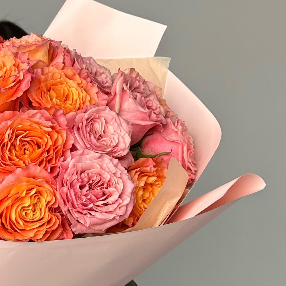 Гвоздики, Кустовые розы, Лизиантусы, Пионовидные розы, Розы