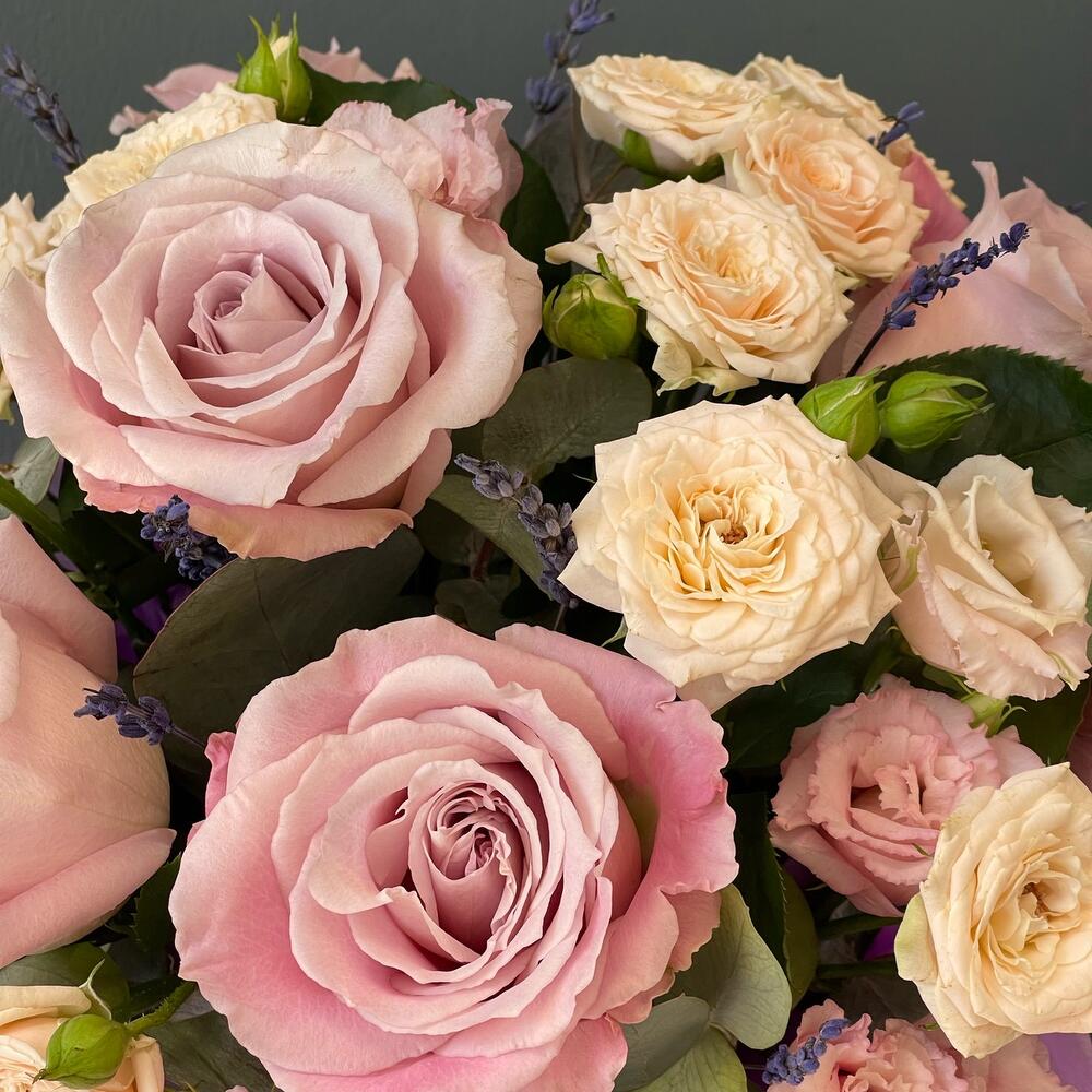 Цветочная композиция с нежными розами"Французский поцелуй"