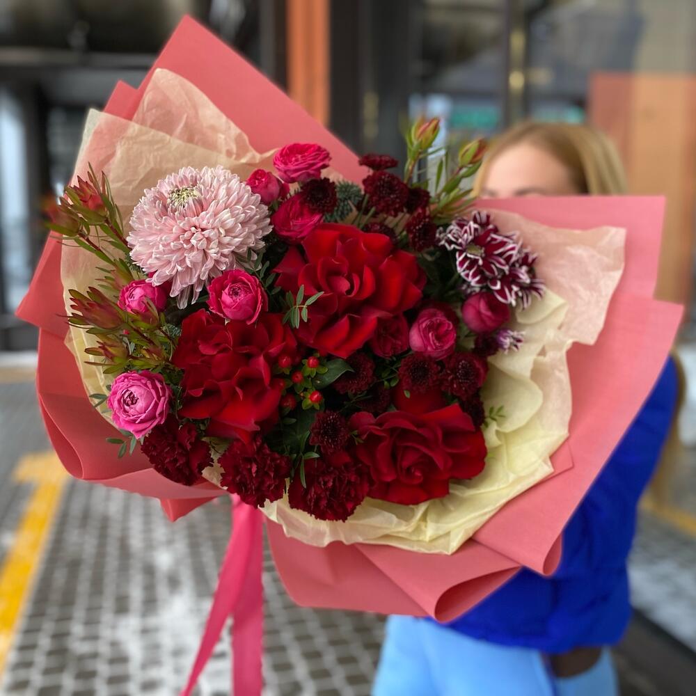 Галактика - страстный букет с розами