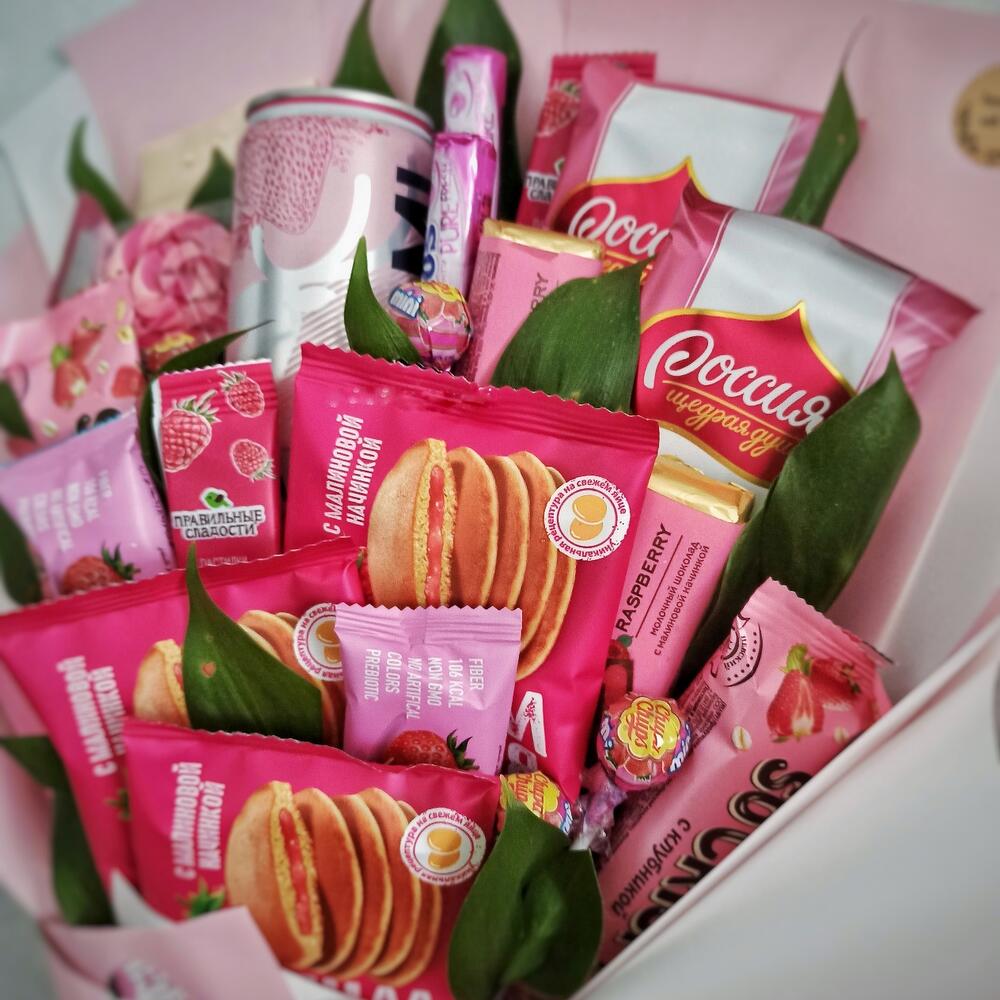 Леденец на палочке – 1 шт.рускус(зелень) – 22 шт.mentos pure – 3 шт.боржоми земляника – 1 шт.yota шарики с малиной – 1 шт.шоколад россия клубника и роза – 3 шт.basker wheels pancake малина – 3 шт.батончики so crispy клубника – 3 шт.батончики musler клубника в йогурте – 3 шт.малиновые пастилки – 3 шт.chupa chups mini клубника – 7 шт.шоколад ozera малина – 3 шт.