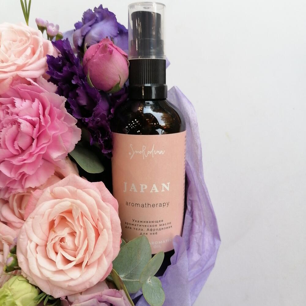 Роза кустовая – 2 шт.Лизиантус – 1 шт.Диантус – 2 шт.Лилия белая – 1 шт.Эвкалипт – 2 шт.масло увлажняющее – 1 шт.