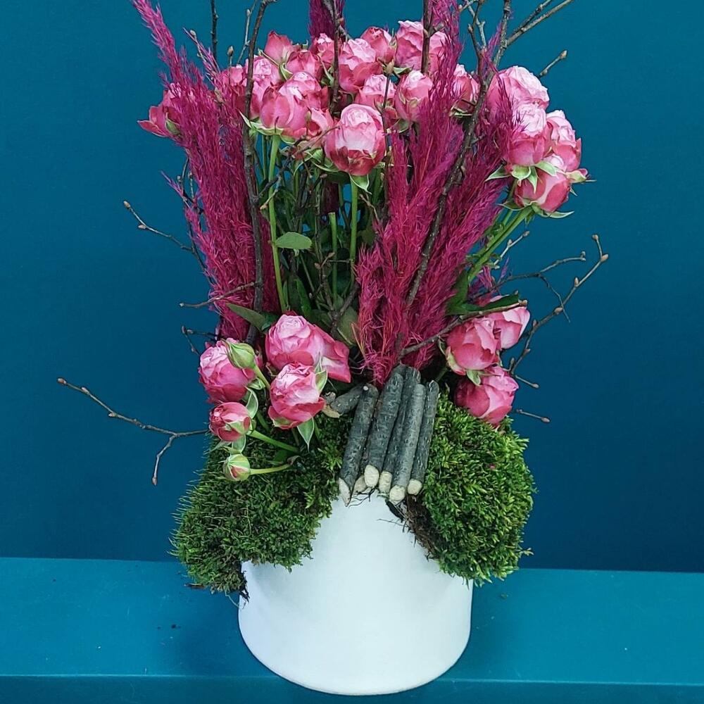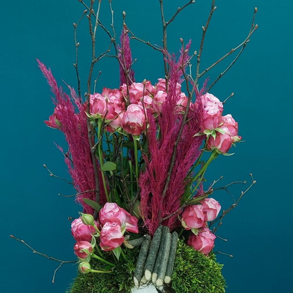 Кустовые розы, Лизиантусы, Розы, Сухоцвет