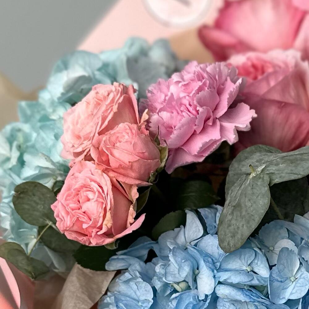 Гвоздики, Кустовые розы, Пионовидные розы, Розы