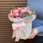“Атлас☁️” – цветочная композиция с зефиром в деревянном ящике