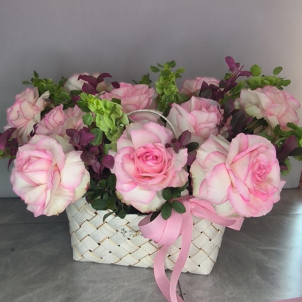 Гвоздики, Кустовые розы, Пионовидные розы, Розы