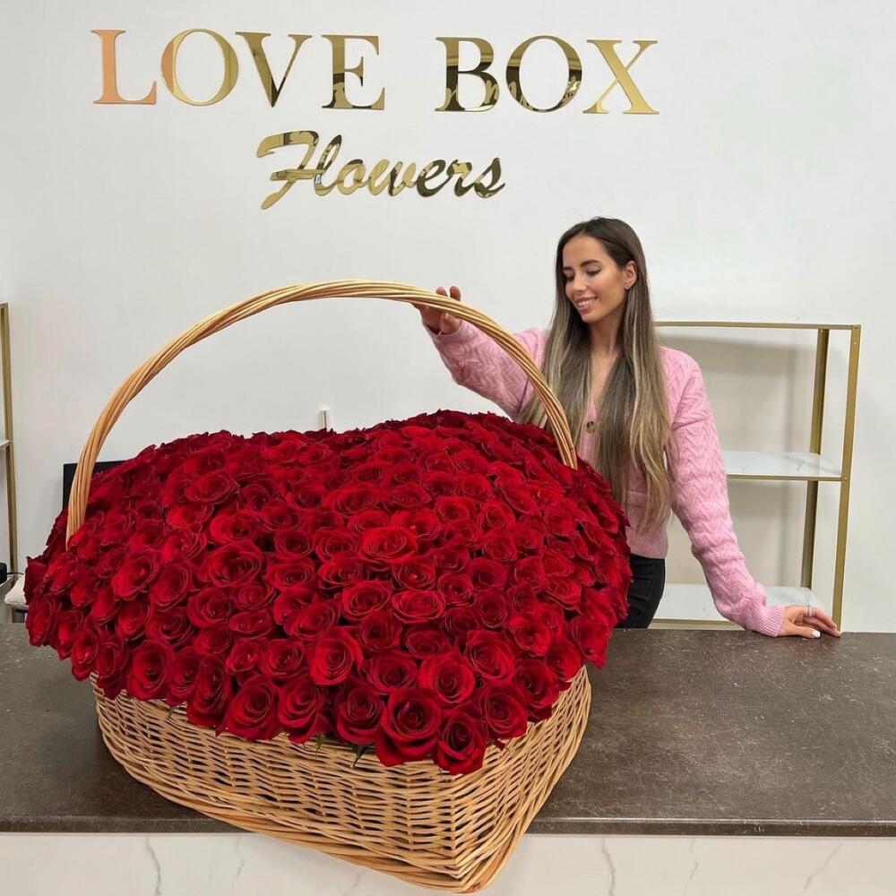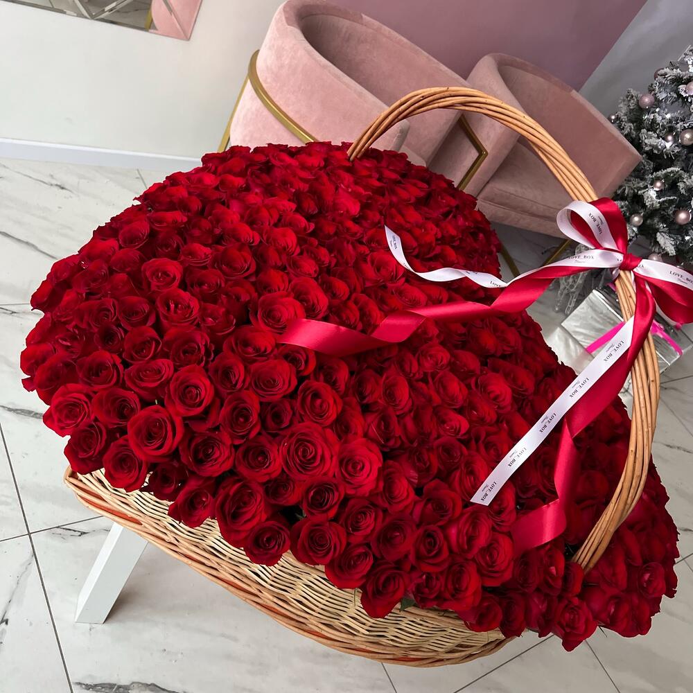 Корзина плетеная – 1 шт.Роза – 251 шт.