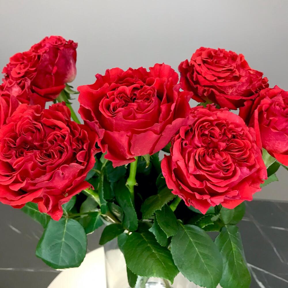 Красная пионовидная роза
