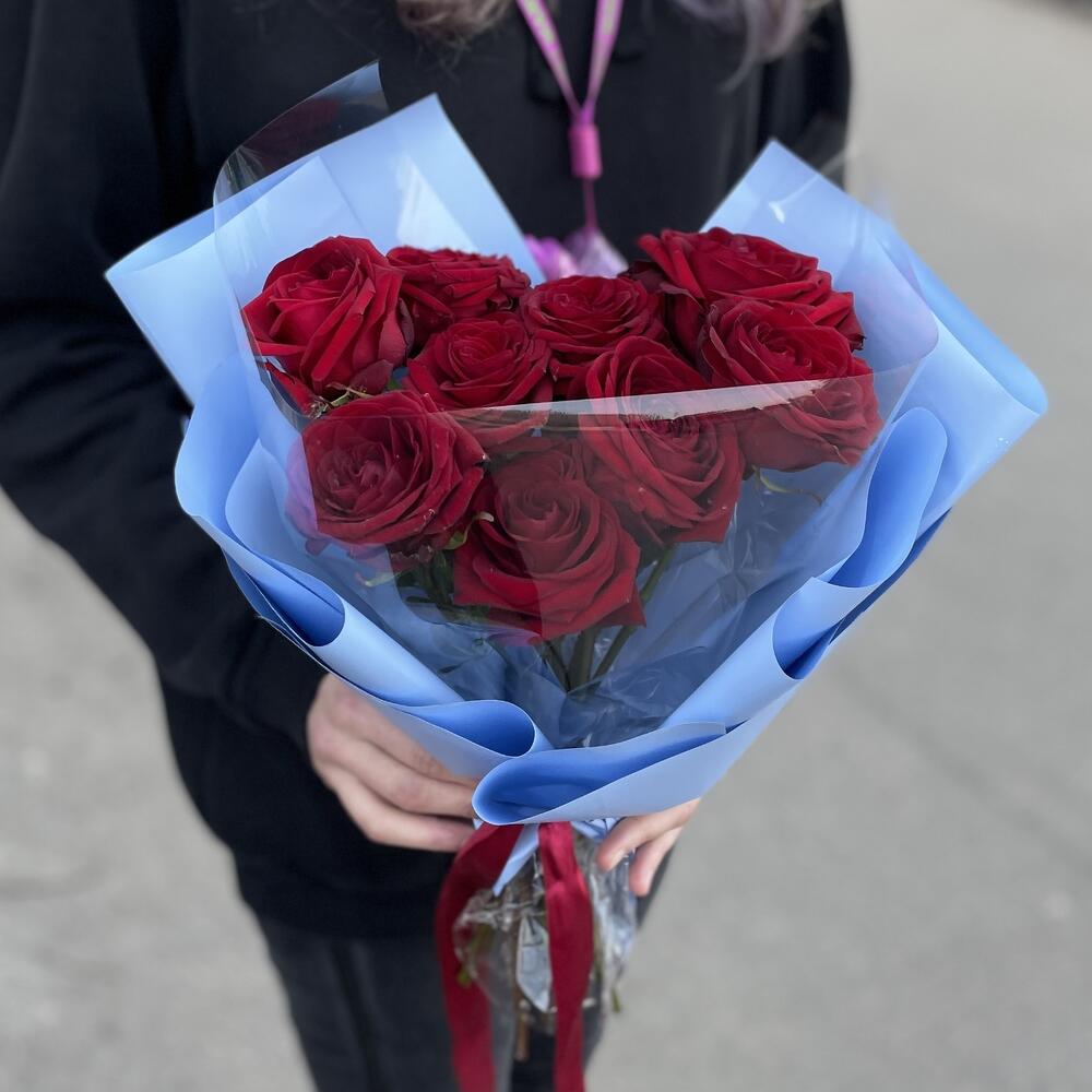 Авторская упаковка – 1 шт.роза эквадор 70 см (эксплоер) – 9 шт.