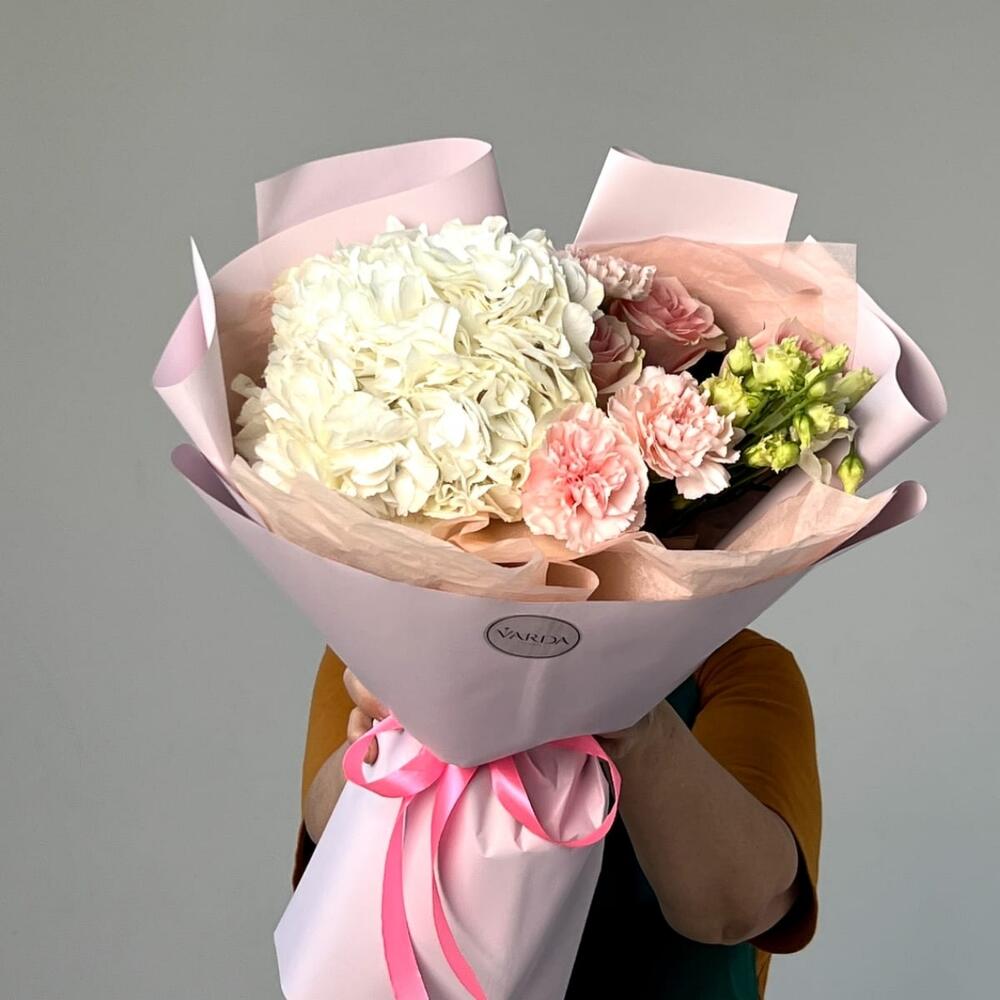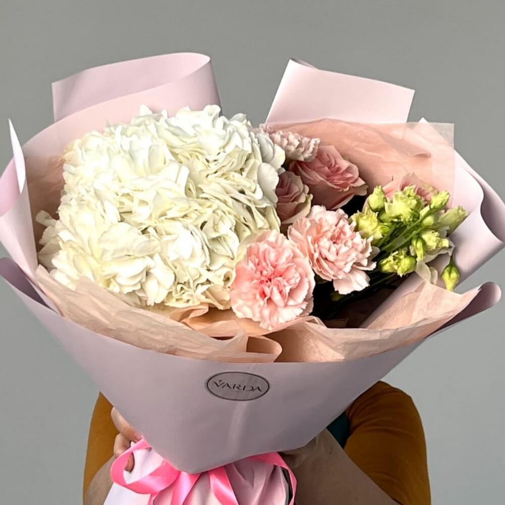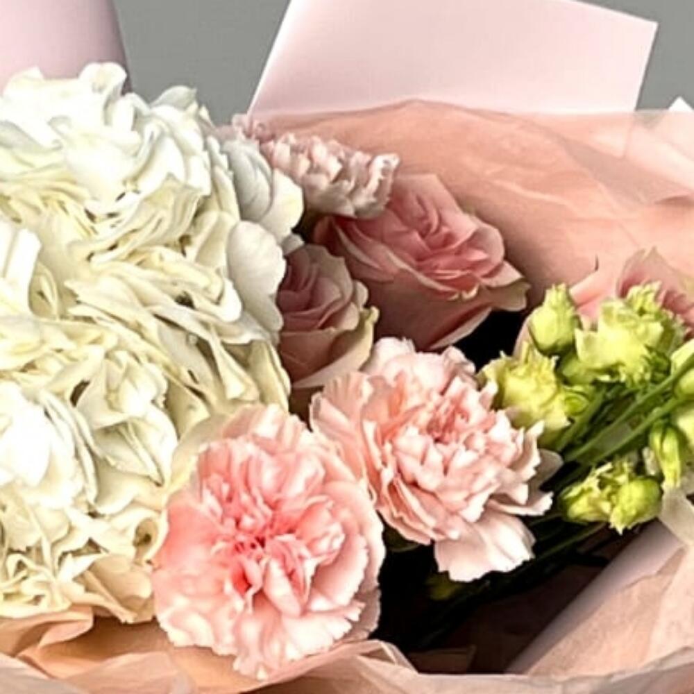 Альстромерии, Гвоздики, Кустовые розы, Лизиантусы, Розы, Хризантемы