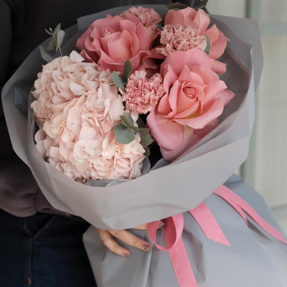 Гвоздики, Кустовые розы, Лизиантусы, Пионовидные розы, Розы