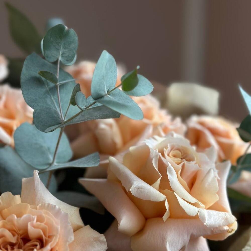 Персиковые розы в гляпной коробке