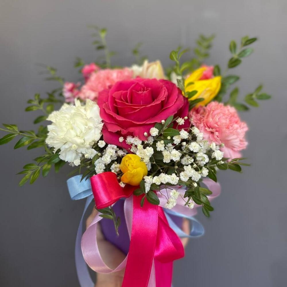 Гвоздики, Лизиантусы, Розы, Тюльпаны