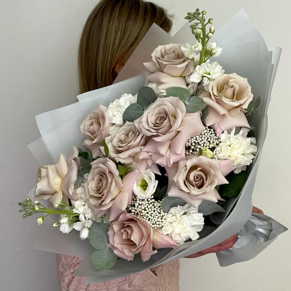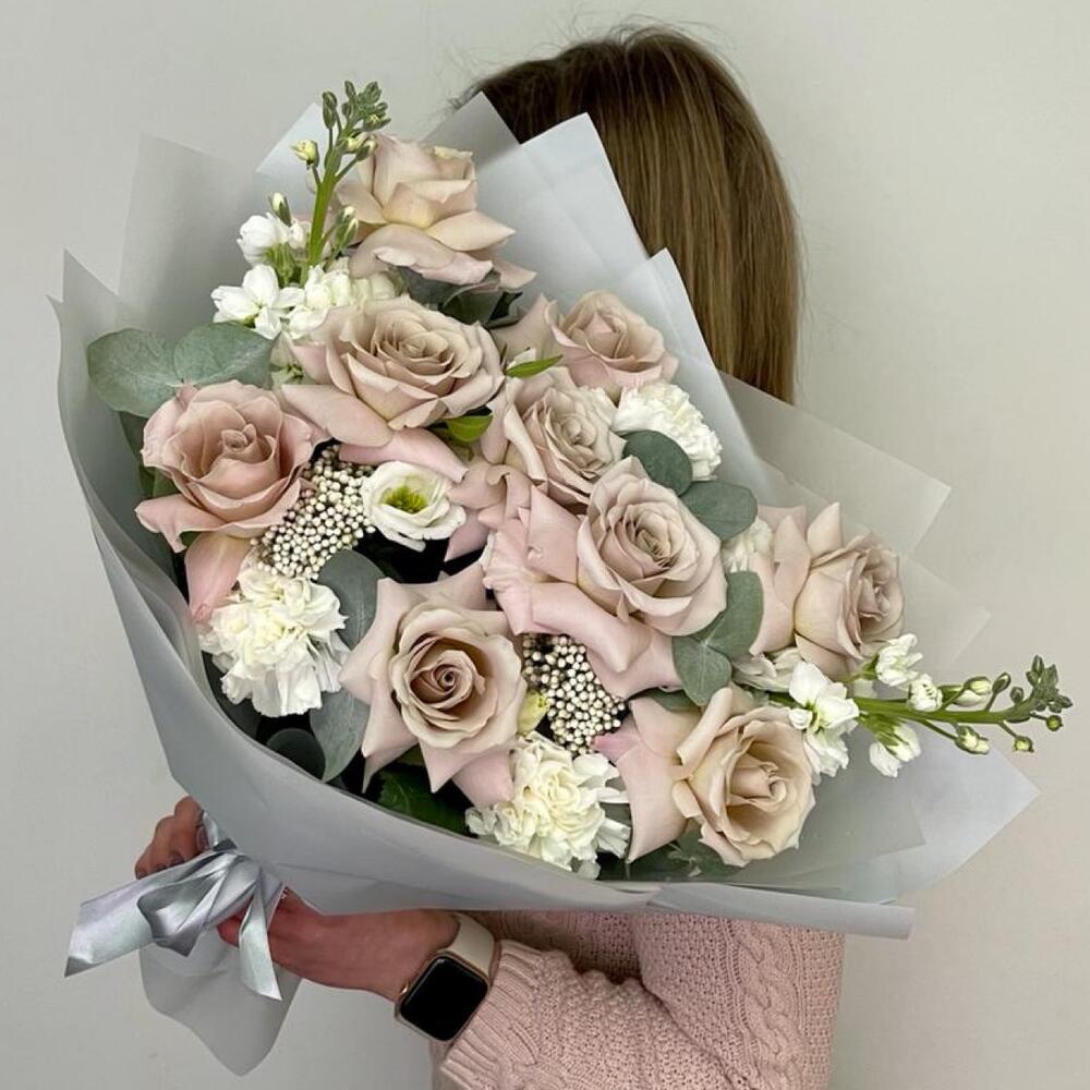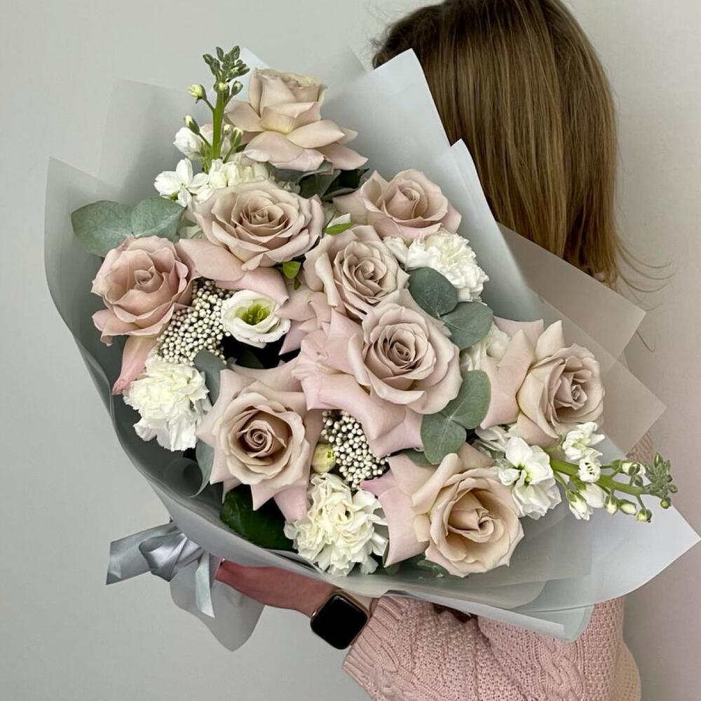 Гвоздики, Кустовые розы, Пионовидные розы, Розы