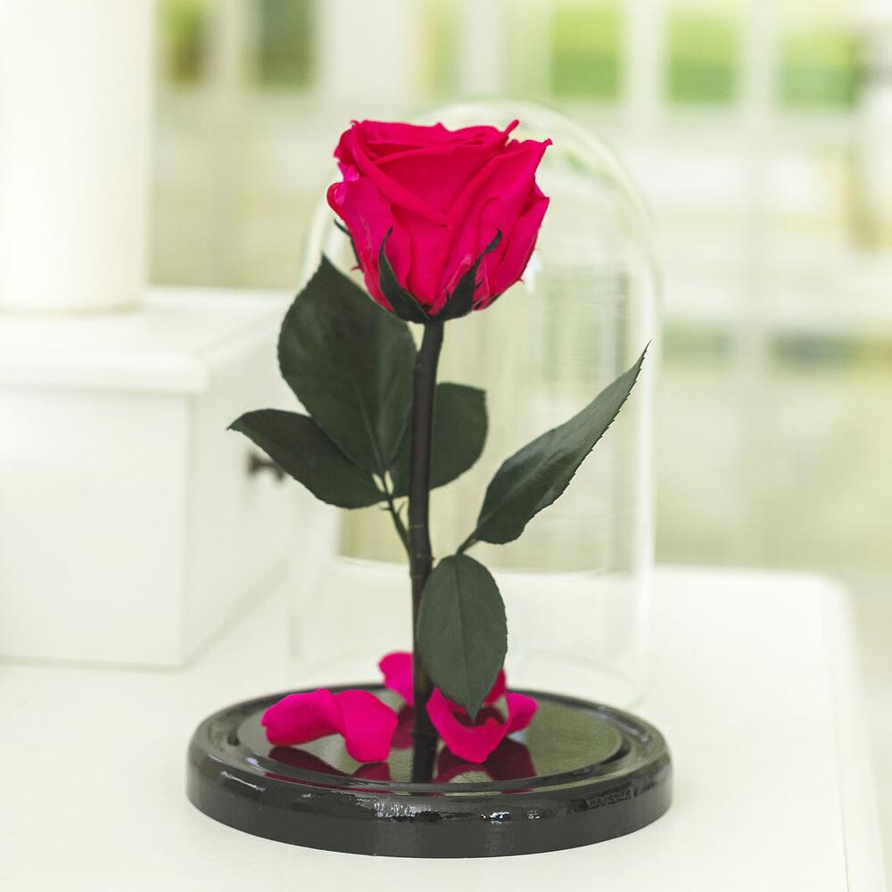 Живая роза, сохраняющая свой первозданный вид не менее 5 ЛЕТ.Создана по мотивам сказки “Красавица и чудовище”.Не требует ухода и особых условий хранения.Это то, о чем она мечтает. Позаботьтесь о подарке заранее!