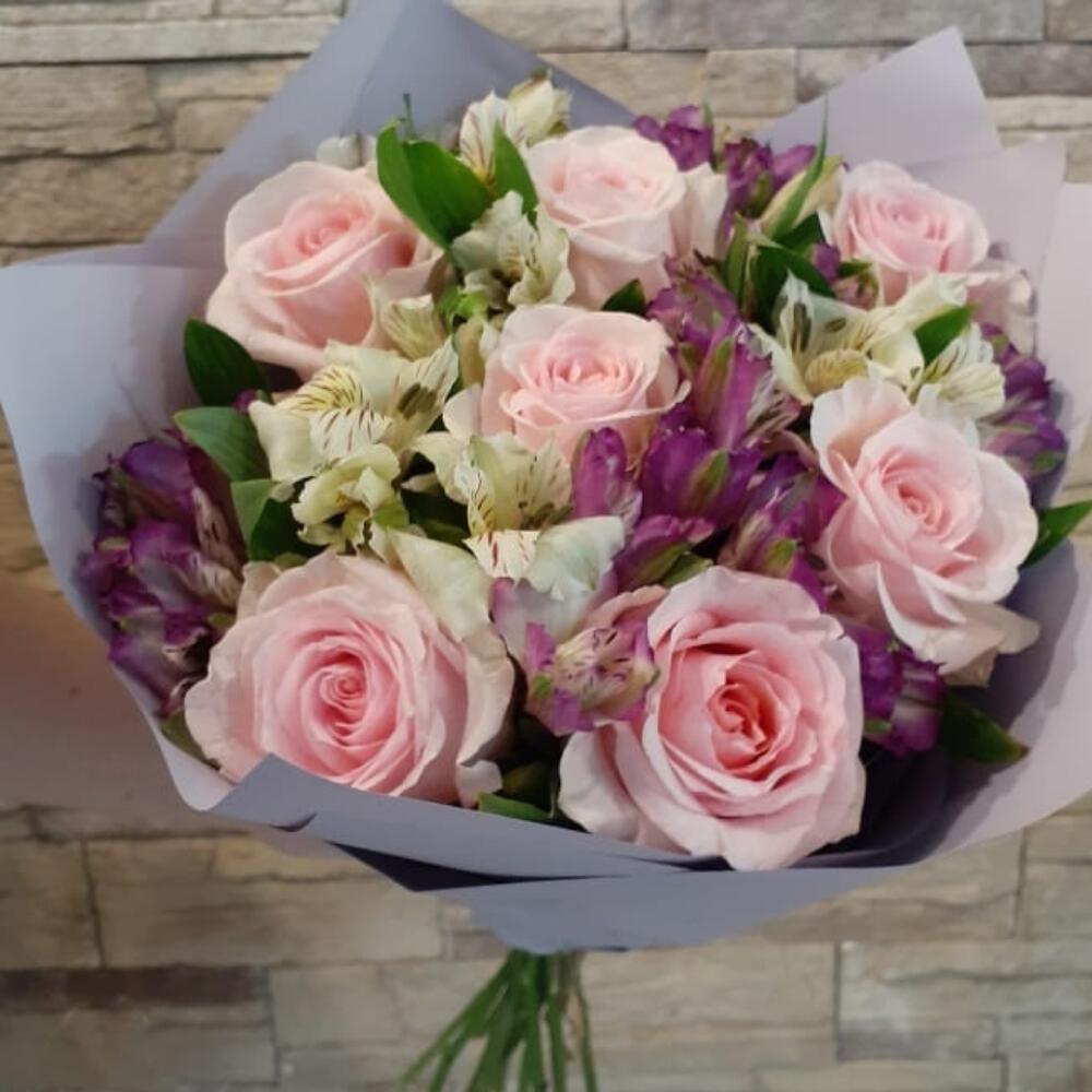 Розы и Альстромерии в классическом и очень нежном букете.(цвет роз и альстромерий в букете может отличаться от фото, наличие по цветам желательно уточнить )