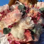 Шляпная коробка со стабилизированными пионовидными розами, ароматным эвкалиптом и натуральным хлопком. Не требует ухода, полива и освещения. Не вянет и не изменяет внешний вид больше года