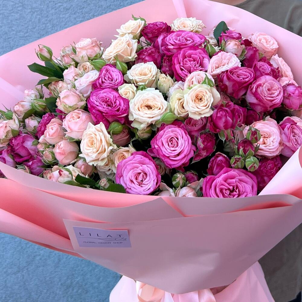 Альстромерии, Гвоздики, Кустовые розы, Лизиантусы, Розы, Хризантемы