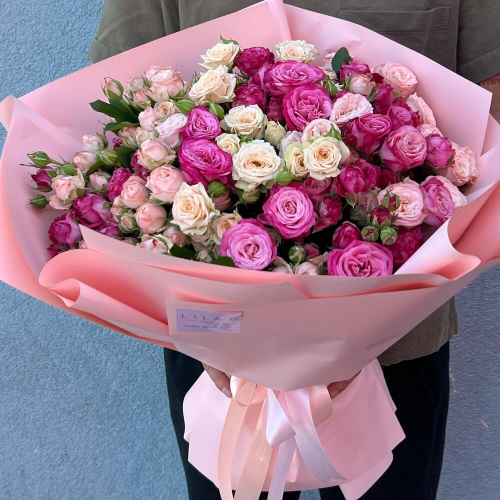 Гвоздики, Кустовые розы, Пионовидные розы, Розы
