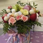 Вкусный букет “Яркая мечта” Клубника в шоколаде и розы