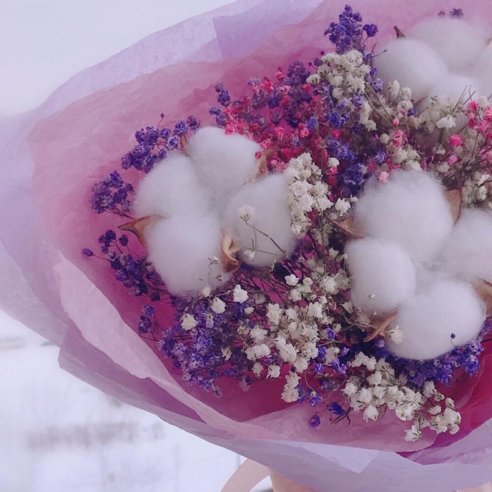 Букет сухоцветов из радужной гипсофилы и хлопка