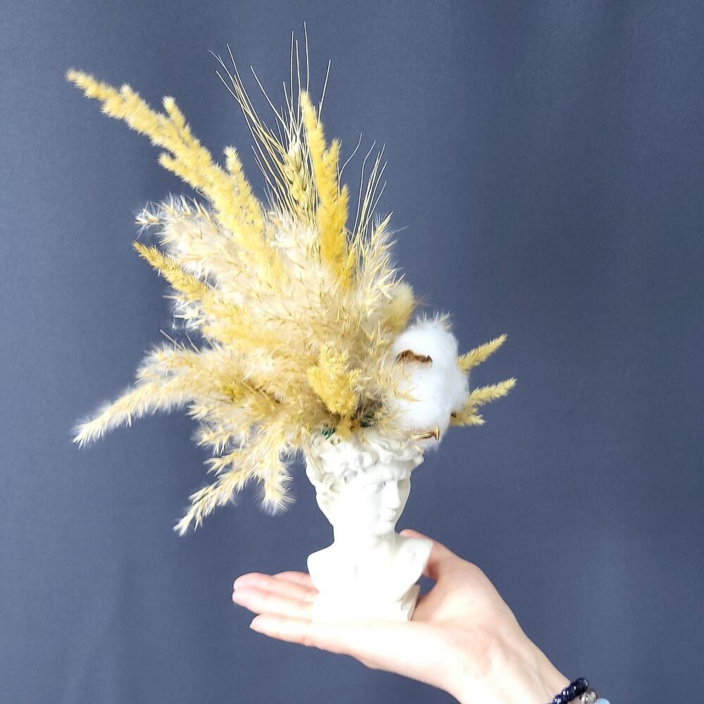 Хлопок – 1 шт.Лагурус – 7 шт.Оазис флористический – 1 шт.Тритикале – 5 шт.кортаделия – 1 шт.голова давида – 1 шт.