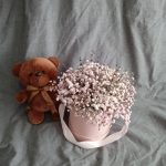 “Сиреневый туман” – композиция из гипсофилы в шляпной коробке