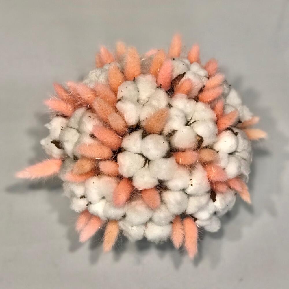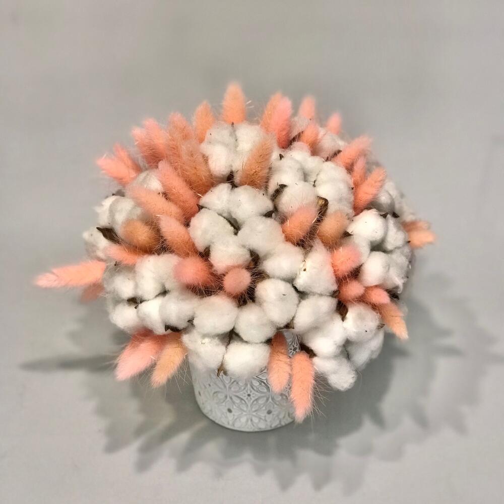 Хлопок ветка – 5 шт.Лагурус (сухоцвет) – 40 шт.Кашпо – 1 шт.