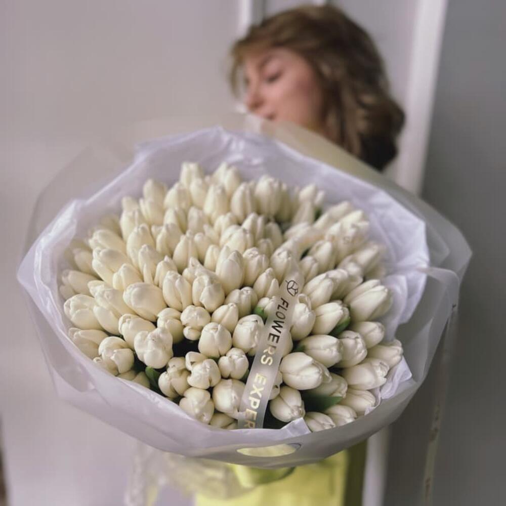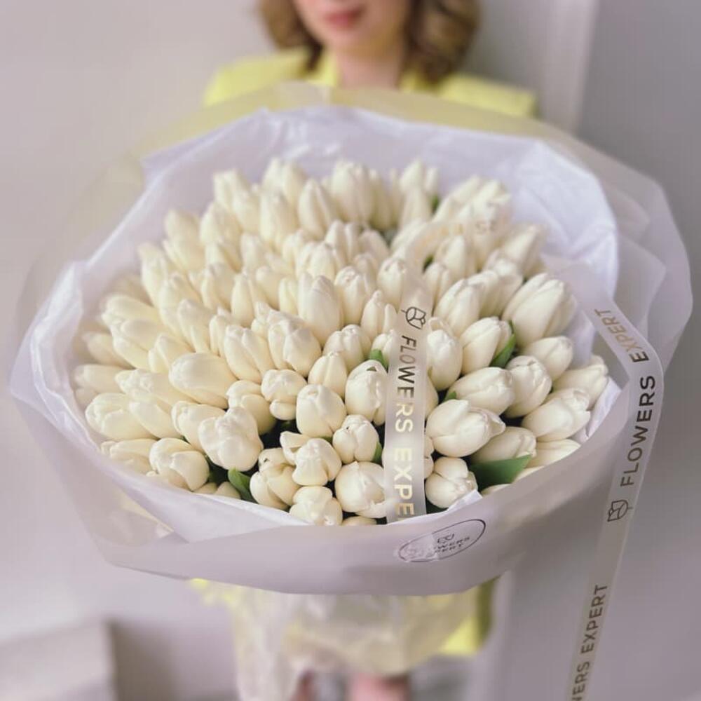 Букет из 101 белого тюльпана “SILK”
