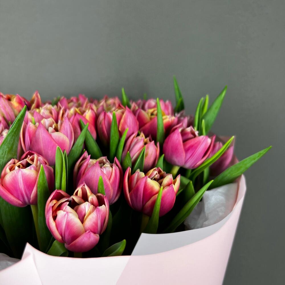 Тюльпан – 25 шт.Лента атласная – 1 шт.Бумага тишью – 1 шт.пленка калька – 1 шт.
