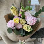 Весенний букет с пионами и маттиолой